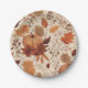 Elevate your wedding reception with this rustic paper plate, featuring a beige and brown maple leaves pattern, perfect for an autumn celebration.