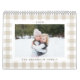 Custom-designed photo calendar featuring rustic beige buffalo check pattern with personalized photos.