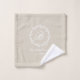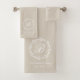Custom-designed family name bath towel set featuring personalized monogram encircled in an elegant white botanical wreath.