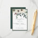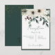 This rustic wedding reception card design features a top bouquet of pine, red berries, white flowers and eucalyptus with a sprinkle of faux gold glitter. The background is white with a dark green and tan thin frame. This design is part of the Rustic Berries Winter Floral Wedding Suite of cards created by Simply Farmhouse Press.