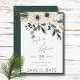 Celebrate your love story in rustic charm with our enchanting wedding save the date card. Hand-painted watercolors bring to life a breathtaking bouquet featuring fragrant pine, vibrant red berries, delicate white flowers, and refreshing eucalyptus. A touch of whimsical magic is captured with a sprinkle of sparkling faux gold glitter, adding a touch of elegance to the rustic theme. Encased within a thin, dark green and tan frame, the design sits upon a crisp white background, ensuring your wedding details stand out beautifully. This captivating suite sets a warm and inviting tone, perfectly reflecting the natural beauty of your special day. Created by Simply Farmhouse Press.