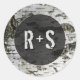 Rustic Birch Tree Bark Modern Wedding Monogram Classic Round Sticker