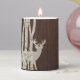 Rustic wood look short candle, with graphics of a white birch tree trunks and a deer. Great looking candle for your rustic decor or country cabin.