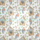 This charming fabric features a rustic watercolor birdhouse, robin and stems with berries pattern.
