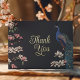 This Rustic Black and Gold Peacock Thank You Card features a modern Chinoiserie-style hand-drawn blue/teal peacock perched on a magnolia tree in full bloom. The back features personal Thank You message and Bride and Groom names.