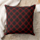 Rustic plaid with dark squiggles crossed over a vivid red and parts with a slight 'carved' effect that causes a stained look or some strips of plastic canvas that were pressed and glued on thick threads.