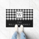 Rustic Black And White Plaid Family Name Doormat