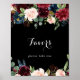This rustic black botanical wedding favors sign is perfect for a classic wedding or bridal shower. The design features burgundy, red, navy, blue and blush radiant and graceful hand-painted flowers in a black background, inspiring natural beauty.
