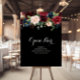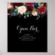 This rustic black botanical wedding open bar sign is perfect for a classic wedding. The design features burgundy, red, navy, blue and blush radiant and graceful hand-painted flowers in a black background, inspiring natural beauty.