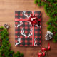 Rustic wrapping paper featuring white deer a antlers pattern. The background is black buffalo check plaid but the red color can be changed. Wrap it up this holiday season in bold rustic wilderness style! Stand out among that pile of presents!