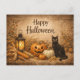 Rustic Black Cat Corn Halloween Holiday Postcard