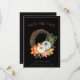 Rustic Black Fall Wreath Pumpkin Save the Date Card. This rustic save the date features a grapevine wreath adorned with heirloom pumpkins, autumn leaves, and soft greenery on a black backdrop. Perfect for cozy countryside weddings or moody fall celebrations with a seasonal harvest theme.