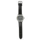 Rustic black marble surface texture with thin white veins for the beauty of natural stone. Time measured with contrasting silver tick marks. "Available on more products" with the link.