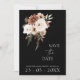 Rustic Black Peach Floral Elegant Save The Date Card. Announce your special day with this elegant rustic save the date featuring soft peach florals on a deep black background. The delicate blooms and refined layout set a romantic tone for your wedding celebration. Ideal for fall weddings or moody floral themes.