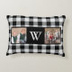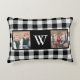 Rustic Black White Buffalo Check 2 Photo Monogram Accent Pillow