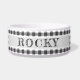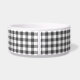 This cute dog bowl features rustic black and white buffalo check, also known as lumberjack plaid. In the center is a gray square lined in white where you can personalize it with your pet's name.