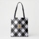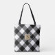 Rustic Black White Buffalo Plaid Monogram Name Tote Bag