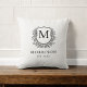 Rustic Black White Monogram Crest Initial Throw Pillow