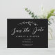 This elegant wedding save the date features a chic black background, hand-drawn wildflower sprig, and elegant typography. On the back is your photo in horizontal format. The photo on the back is removable if desired. It's a perfect design for a rustic yet elegant wedding! See the collection for more items!