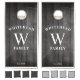 Have fun with this rustic wood background cornhole set. This design features a place for you to put your initial and name.
