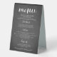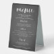 This rustic wedding menu table sign is set on a blackboard background to match a rustic theme. Display on tables at your reception let your guests know the menu!