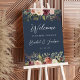 Welcome guests to your wedding with our Rustic Bloom sign, featuring watercolor botanical greenery and flowers in rich autumn colors, with "welcome to our happily ever after," your names, and wedding date in a chic mix of traditional serif and calligraphy typefaces.