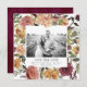 Our Rustic Bloom save the date card in a unique square format frames your favorite engagement photo with a border of painted watercolor flowers in lush autumnal shades of blush, burgundy, and marsala with dark green foliage. Personalize with your names, wedding date and location using the fields provided.