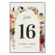 Rustic elegant table number cards feature an arch of watercolor rose and mum flowers in autumn shades of marsala, burgundy, blush pink, and ivory with green foliage. Your table number, event date and additional custom text appears in the center. Design repeats on reverse side. Coordinates with our Rustic Bloom elegant floral wedding invitation suite for fall or winter weddings.