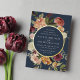Elegant floral wedding invitations or fall or winter weddings feature your details encircled by watercolor roses, mums and greenery in rustic autumn colors including peach, ivory, blush, burgundy and green, with sleek gold foil trim on a rich navy blue background. A modern and elegant design for rustic chic weddings in the fall or winter months.