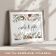Designed to match our Rustic Bloom wedding collection, this elegant botanical sign lets guests know where to drop off their cards and gifts. Personalize with one line of custom text in calligraphy script lettering (shown with "Cards & Gifts"), framed by watercolor flowers and greenery in rustic autumn shades.