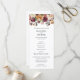 Rustic elegant wedding program features your ceremony details in soft off-black lettering, with your names topped by painted watercolor flowers in rich autumn shades of burgundy, marsala, blush pink, ivory and dark green. Reverse side lists the members of your wedding party with easily editable text fields. Coordinates with our Rustic Bloom wedding invitation collection for chic fall or winter weddings. Use the template fields to add your ceremony and bridal party information, and then click "Customize It" to reposition elements if needed. Need help? Contact me via the "Ask this Designer" link on this page.
