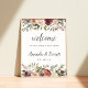Welcome guests to your wedding with our Rustic Bloom poster, featuring watercolor botanical greenery and flowers in rich autumn colors, with "welcome to our happily ever after," your names, and wedding date in a chic mix of traditional serif and calligraphy typefaces.
