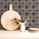 This rustic tile features a traditional blue and white Majolica design with intricate floral and scrollwork details. Its distressed finish adds an authentic vintage touch, perfect for Mediterranean, farmhouse, or classic decor styles. The symmetrical pattern creates a cohesive and timeless look, making it an excellent choice for backsplashes, accent walls, or decorative projects. Bring charm and elegance to your space with this beautifully crafted tile.