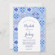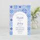 Rustic Blue Arch Portuguese Tile QR Code Wedding Invitation