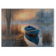 Rustic blue boat Morning Sky Reflection Cutting Board