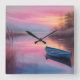 Rustic blue boat pink skies reflection square wall clock