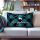 Custom holiday throw pillow with a rustic teal and black buffalo check plaid pattern and white reindeer graphic. Personalized it with your family name monogram and custom Merry Christmas greeting. Use the design tools to choose any background color, or add your own text and photos to create a one of a kind Christmas pillow. Our personalized pillows make a great gift or the perfect touch for your winter home decor!