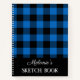 This monogram sketch book notebook features a blue buffalo check pattern.