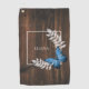 Personalize a unique towel for golfing with a Rustic Blue Butterfly Personalized Golf Towel. Towel design features a vibrant butterfly resting on delicate foliage with a space to add your name against a rustic wooden background. Additional gift items available with this design as well as a variety of colors.