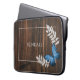 Protect your laptop with a Rustic Blue Butterfly Personalized Laptop Sleeve. Laptop sleeve design features a vibrant butterfly resting on delicate foliage with a space to add your name against a rustic wooden background with a place to personalize with your name.