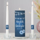 Rustic blue wedding unity candles feature wood photo background with twinkling string of lights and daisies. Mix and match this unity candle with our collection of matching wedding stationery and favors.