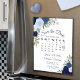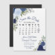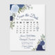 These beautiful magnetic wedding save the date cards feature a rustic yet elegant hand painted floral design with watercolor roses in shades of dusty blue, navy, and indigo, surrounded by a bevy of eucalyptus leaves, greenery, and foliage. There is a customizable calendar showing the month of your wedding with a heart around your special day. Fashionable, bohemian, and chic, this card is a great way to make sure your friends and family are aware of your upcoming wedding.