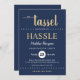 Rustic Blue Gold Tassel Script Graduation Party Invitation