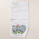 The lovely floral art on these towels feature blooming hydrangeas in delightful shades from pink to blue to lavender, with a wood board texture background. Bath towel has two first names and a last name for you to personalize. Hand towel and wash cloth have a monogram initial to personalize.