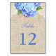 Rustic Blue Hydrangea Lace & Burlap Wedding Table Number