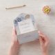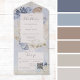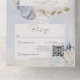 AVAILABLE WITH OR WITHOUT A QR CODE OR WITH OR WITHOUT DINNER SELECTION OPTIONS. This design features a beach themed frame of dusty blue coral, tan, cream and brown shells and starfish and sea life on a soft dusty blue background that has been distressed with champagne gold. Add a QR code to your invitation so that gusts can quickly access your wedding Website for details, directions, menu options, and more, or add your gift registry Web URL. Personalized All-In-One invitations are a unique combination of both a beautifully printed custom invitation with an easy to tear off perforated RSVP postcard. And they are so easy to use! You simply fold, then seal the back flap with the three included clear stickers, and mail. And when your guests receive your custom invite, they just tear the perforated RSVP Card off and drop it back in the mail to you!