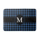 Rustic Blue Plaid Checks Pattern Monogram Bath Mat