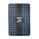 Rustic Blue Plaid Checks Pattern Monogram Bath Mat.