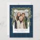 Rustic Blue Plaid Greenery Christmas 4 Photo Holiday Card