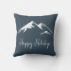Rustic Blue Snowy Mountain Happy Holidays Throw Pillow
